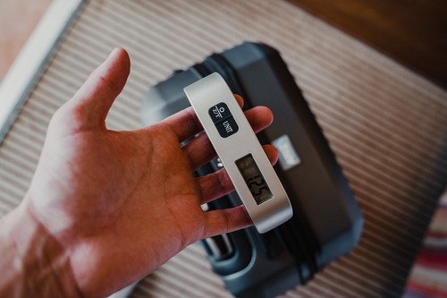 Fijá la correa de la balanza al asa de la valija y levantala suavemente. En segundos, la pantalla digital te muestra el peso exacto en kilogramos o libras (hasta 50 kg o 110 lbs).