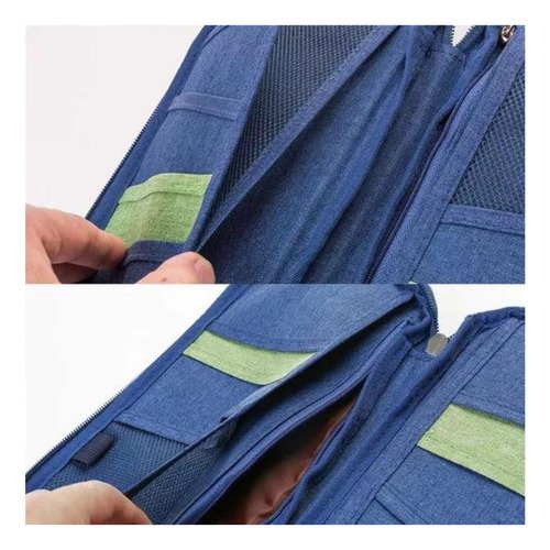 – 10 compartimentos internos: 1 Bolsillo con cierre para guardar documentación importante, dos de ellos de red que permite visualizar los objetos fácilmente.