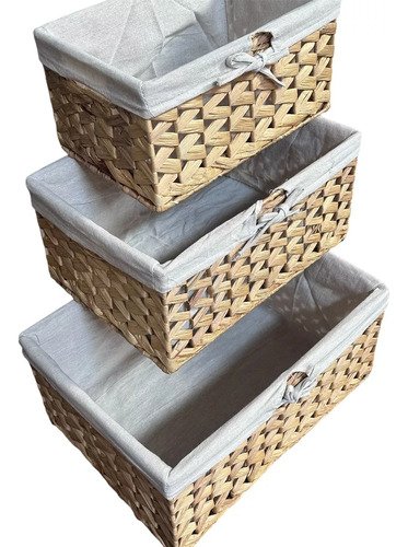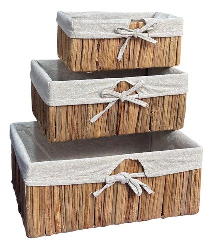 Canasto Organizador De Yute 3 Unidades Con Tela Decoracion