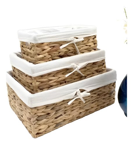Canasto Organizador De Yute Con Tela Rattan Set X 3 Unidades