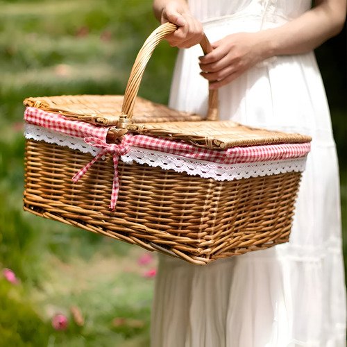 Canasto Picnic De Mimbre Para Compras Y Vacaciones