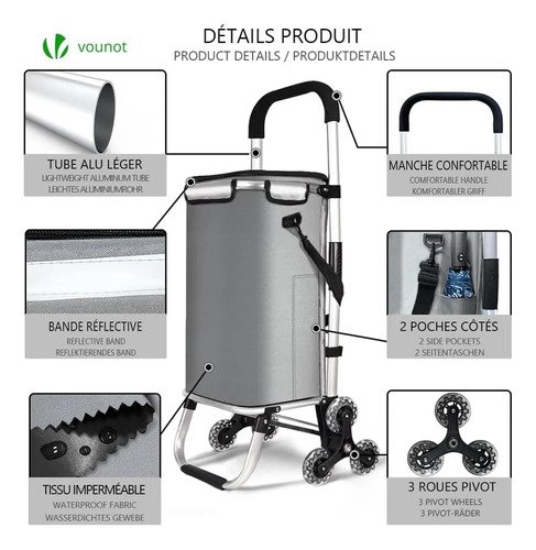 Olvidate del esfuerzo al subir escaleras o cordones. Este carro de feria con 6 ruedas de resina extra dura está diseñado para moverse sin problemas por cualquier superficie, incluyendo escalones y veredas irregulares. Es resistente, liviano y perfecto para hacer tus compras con comodidad y sin cargar peso innecesario