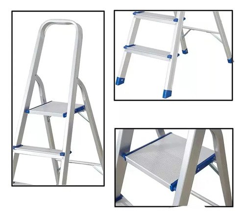 Escalera Domestica Aluminio Reforzada 3 Escalones 150 Kg