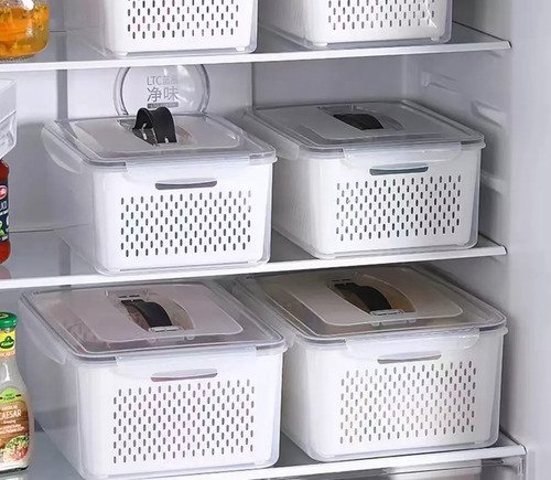 También se pueden utilizar como organizadores en la cocina, son de un material muy resistente, contienen manija en la parte de arriba ademas de botón para abrir o cerrar la entrada de aire. Todos los taper contienen un colador adentro muy practico.