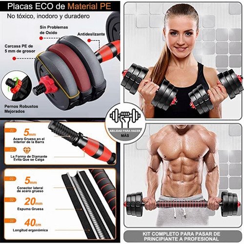 Juego De Ejercicios Con Mancuernas Ajustable 20 Kg Color Negro