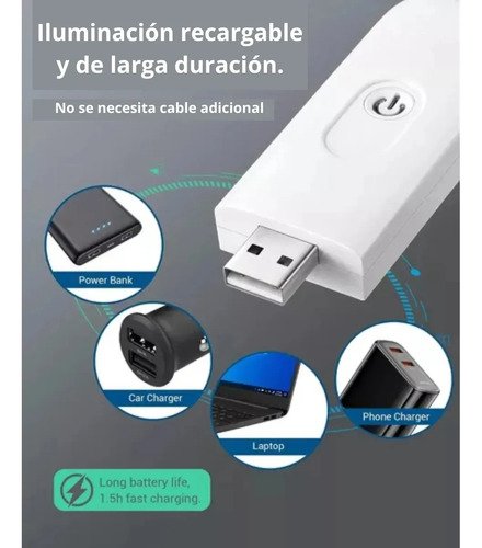 Cuenta con conector USB incorporado en la base, no necesita cables adicionales. Podés cargarla conectándola directamente a una computadora, power bank, adaptador, cargador de auto, entre otros.