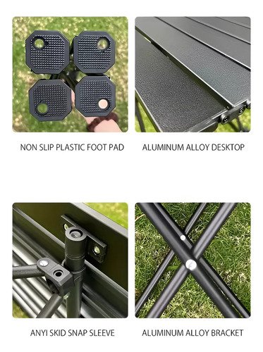 Hecho de aleación de aluminio resistente, la construcción sólida hace que la mesa plegable sea duradera. Diseño único de tapas de patas antideslizantes, muy estable y seguro de usar. A diferencia de las mesas de tela normales, hay una superficie más resistente y plana.