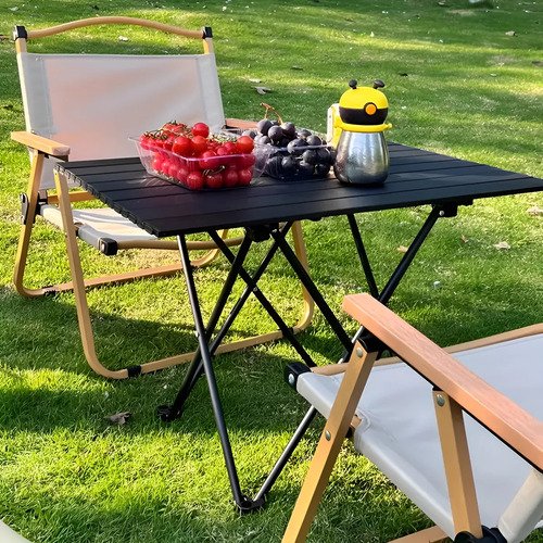 Mesa Para Camping Patio Jardin Picnic Aluminio Exterior Negro